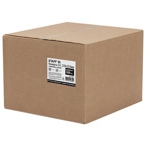 Конверты С4 (229х324 мм), отрывная лента, "Куда-Кому", 100 г/м2, КОМПЛЕКТ 500 шт., STAFF, 118667