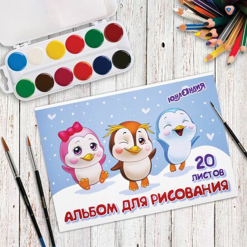 - Альбомы для рисования: листы А4 и А3 для карандашей, красок и маркеров.
