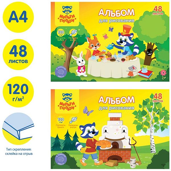 - Альбомы для рисования: листы А4 и А3 для карандашей, красок и маркеров.