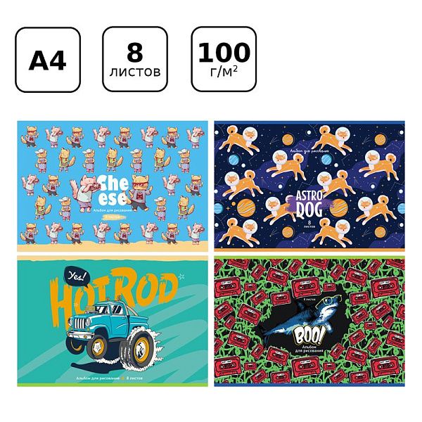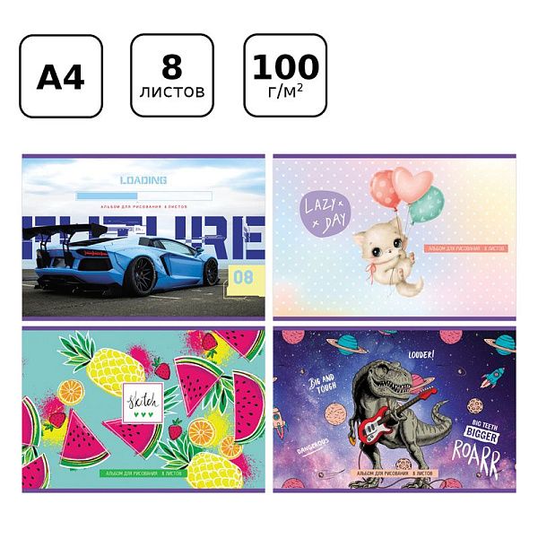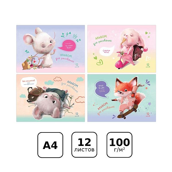 • Альбомы для рисования: листы А4 и А3 для карандашей, красок и маркеров.