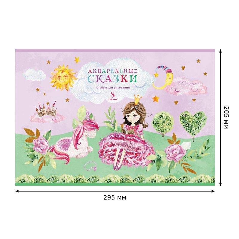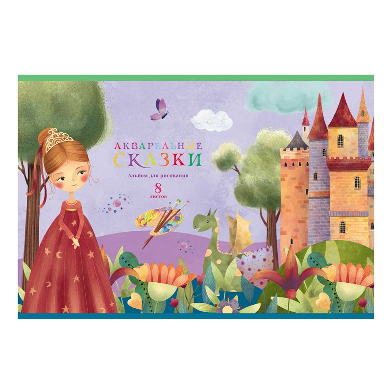 Альбом для рисования 08л., А4, на скрепке BG "Акварельные сказки", эконом