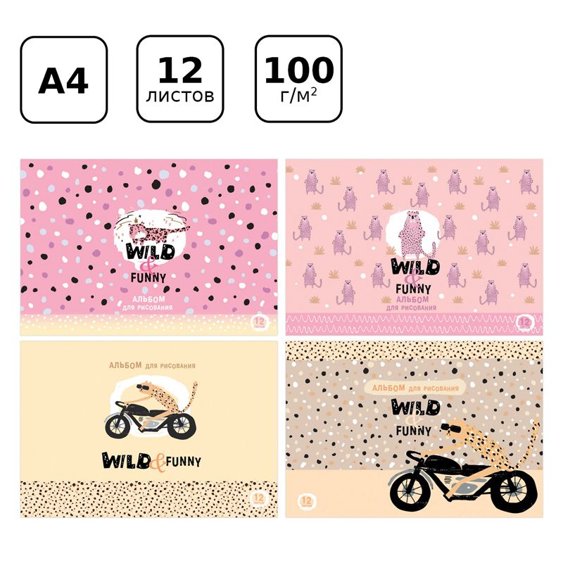 Альбом для рисования 12л., А4, на скрепке BG "Дикие и смешные"