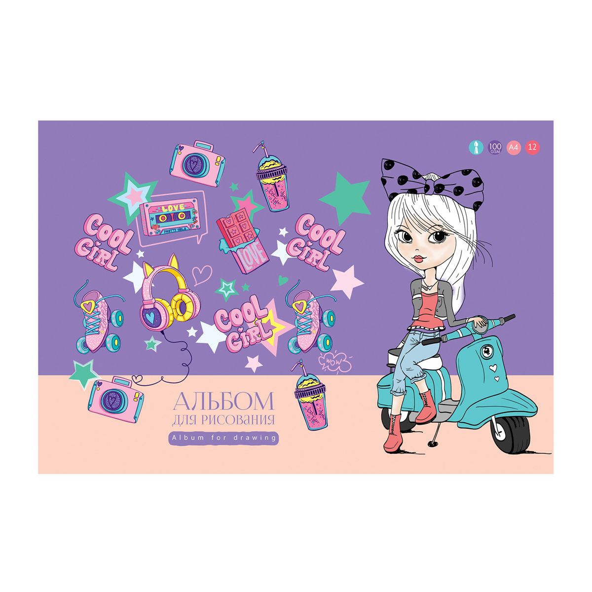 Альбом для рисования 12л., А4, на скрепке BG "Для тебя"