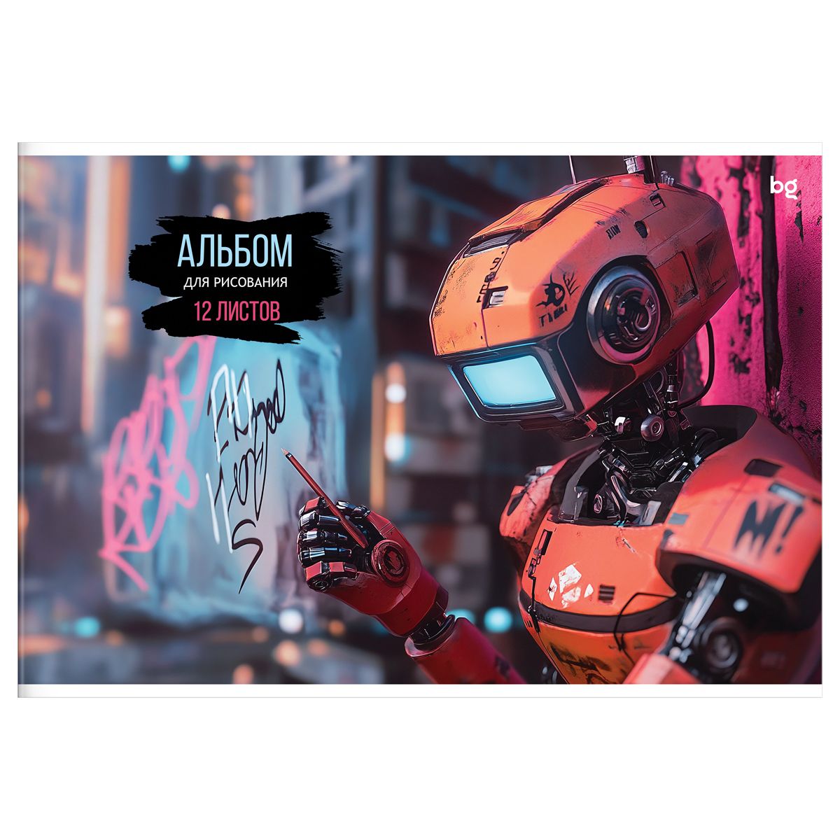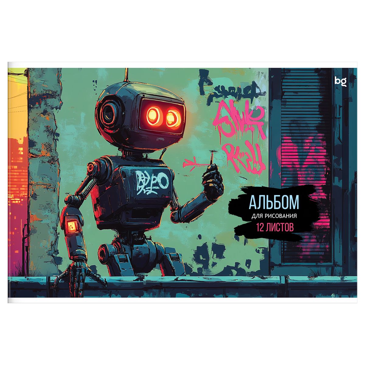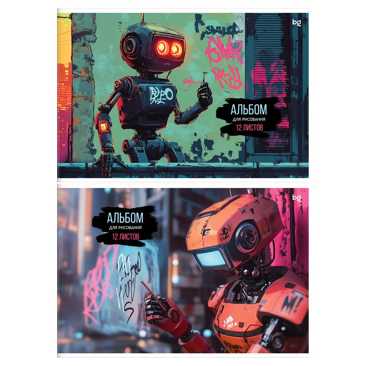 Альбом для рисования 12л., А4, на скрепке BG "Роботы", эконом