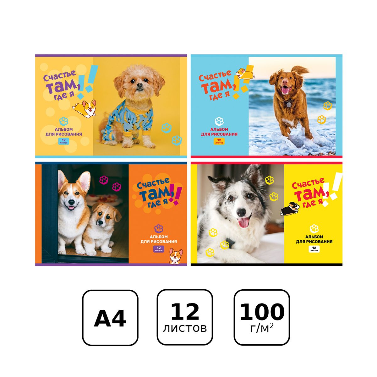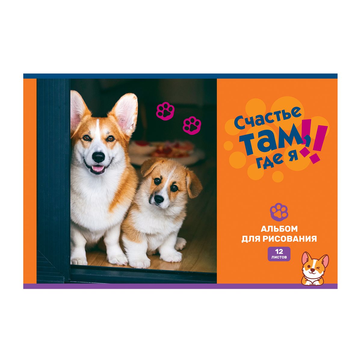 Альбом для рисования 12л., А4, на скрепке BG "Счастье там, где я", эконом