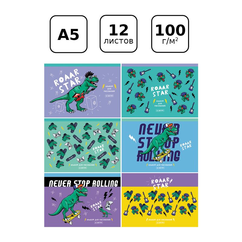 Альбом для рисования 12л., А5, на скрепке BG "Roaar star"