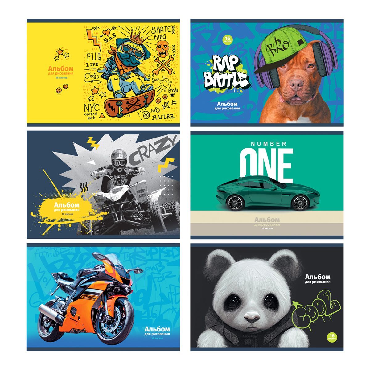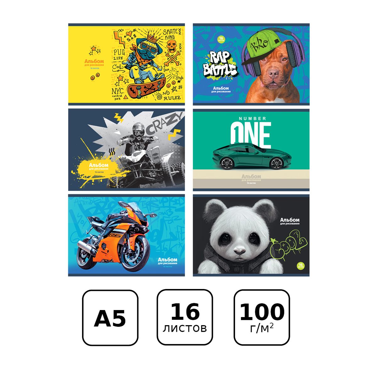 Альбом для рисования 16л., А5, на скрепке BG "Mix. Мальчики"