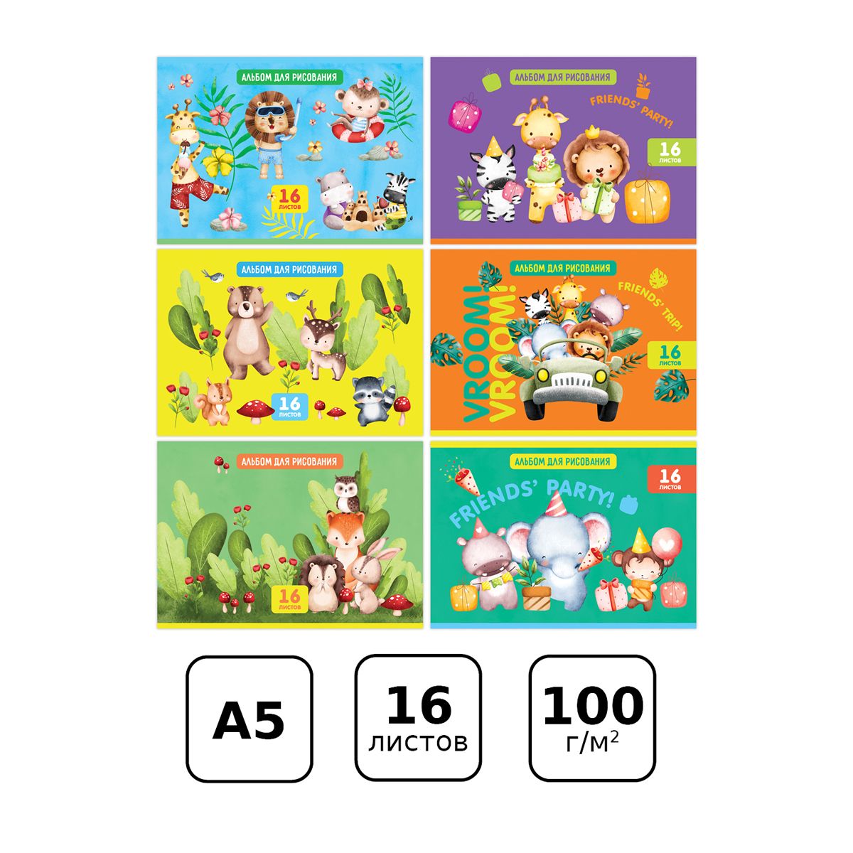 Альбом для рисования 16л., А5, на скрепке BG "Вместе весело"