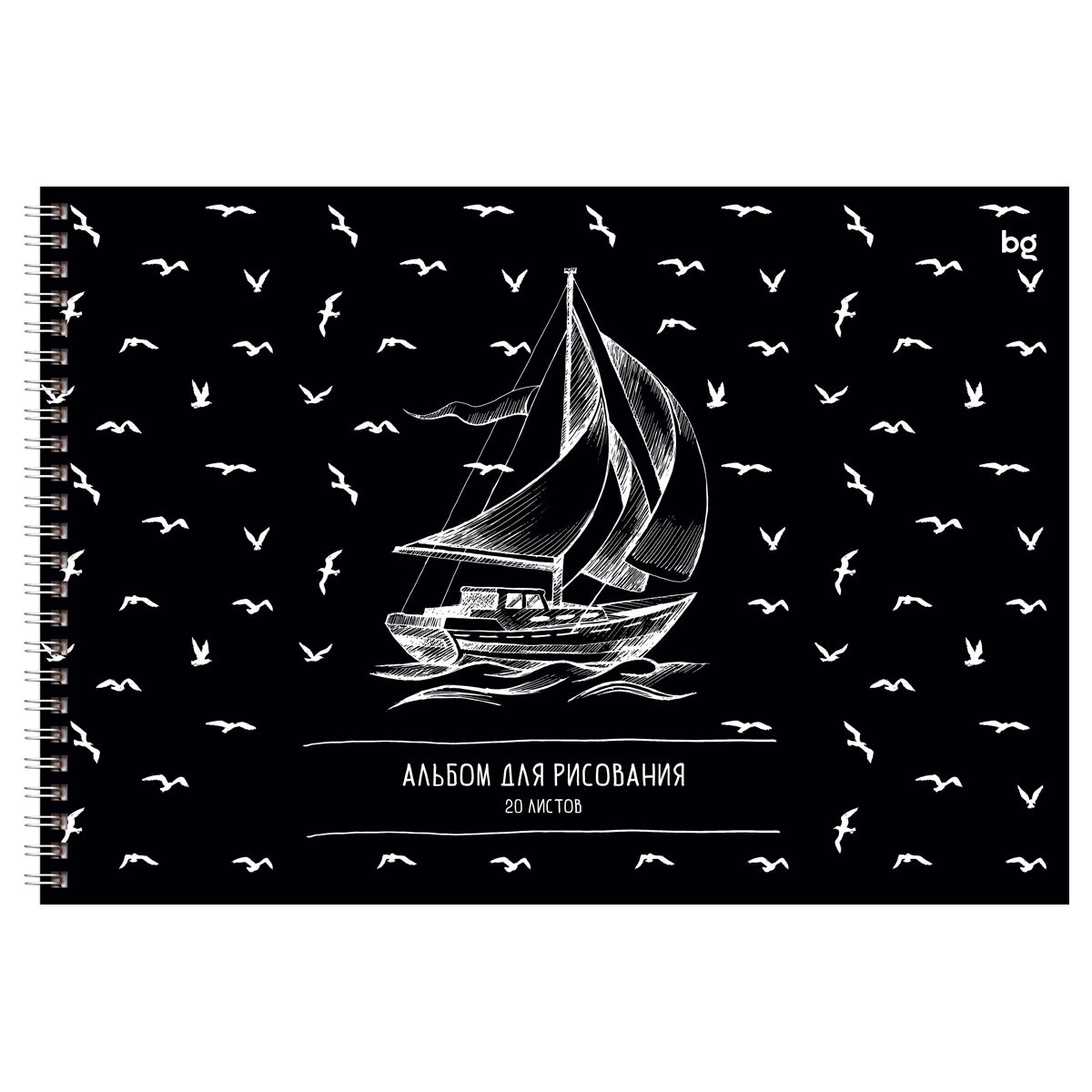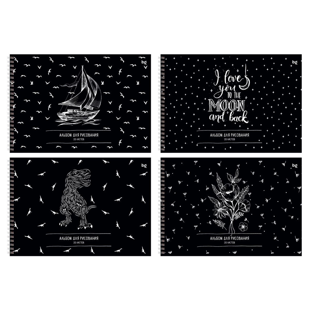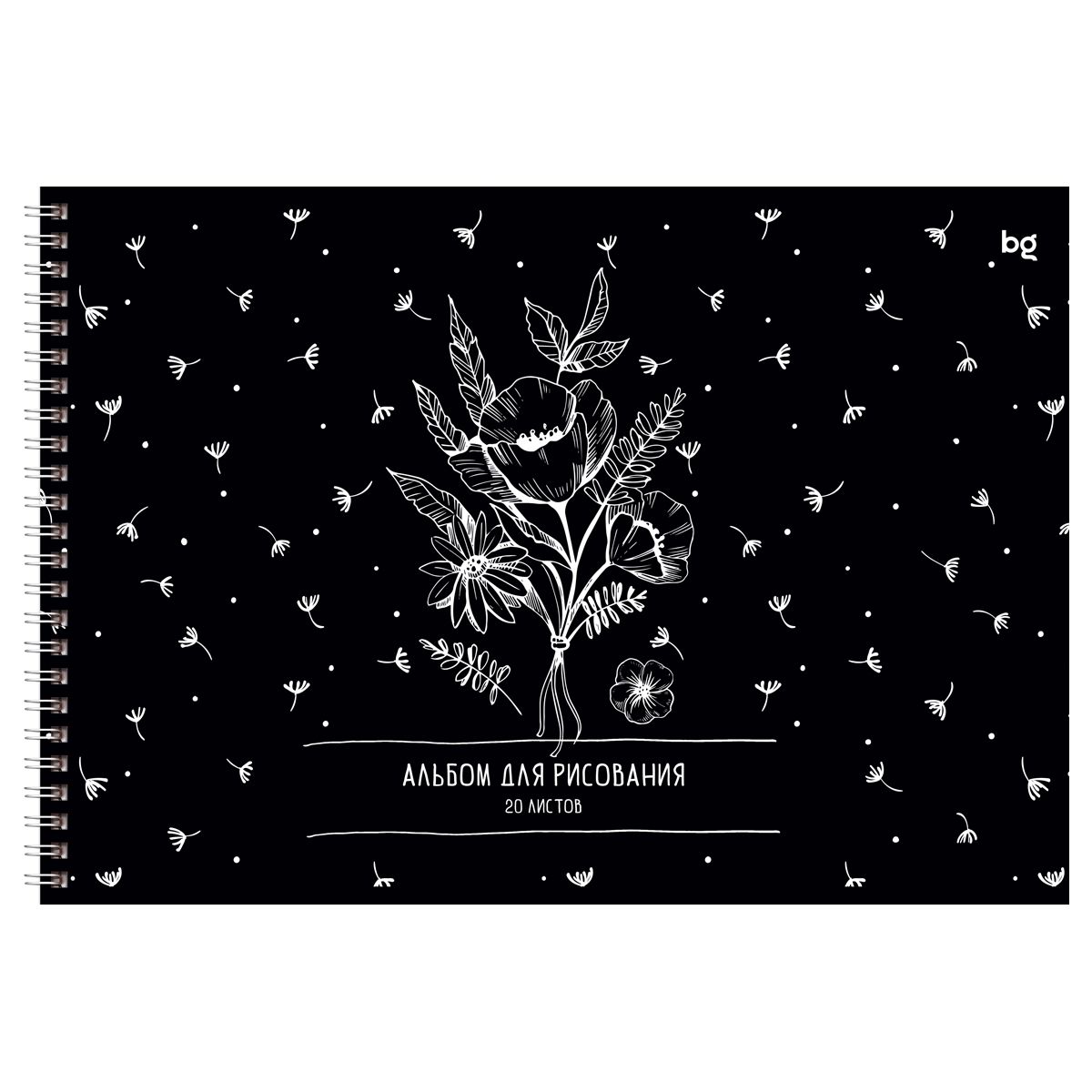 Альбом для рисования 20л., А4, на гребне BG "Черный стиль", эконом