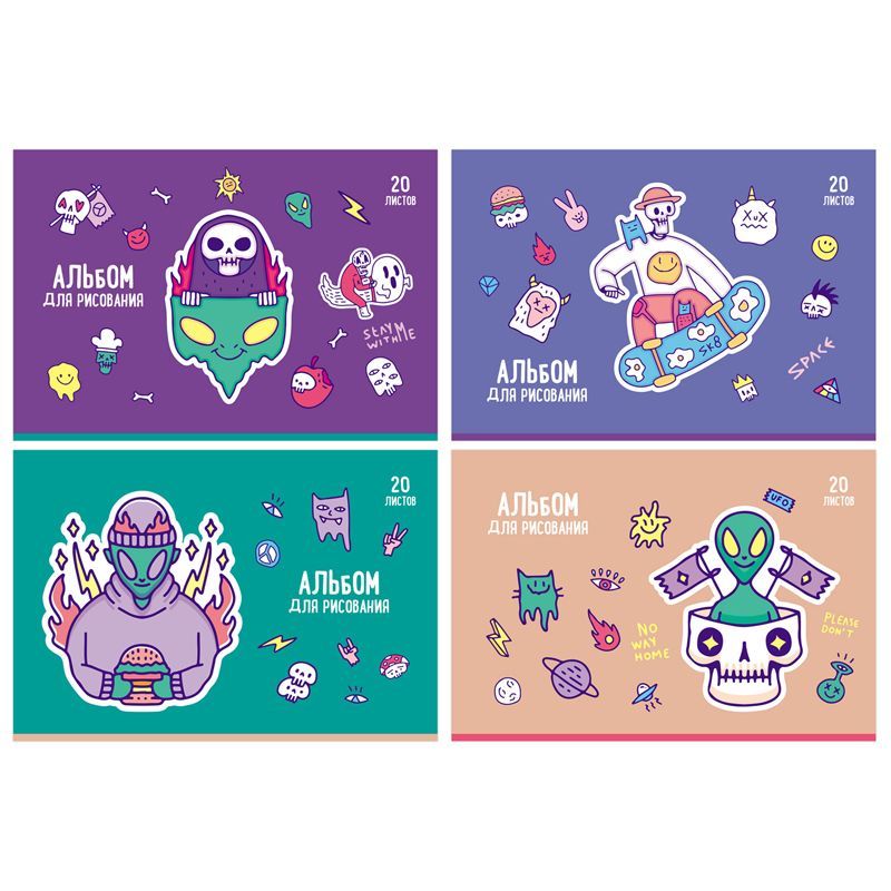 В упаковке ассорти дизайнов альбомов, которые понравятся мальчикам. Альбом отлично подойдёт для рисования различными типами красок, фломастерами, цветными и чернографитными карандашами, гелевыми ручками. Без возрастных ограничений.