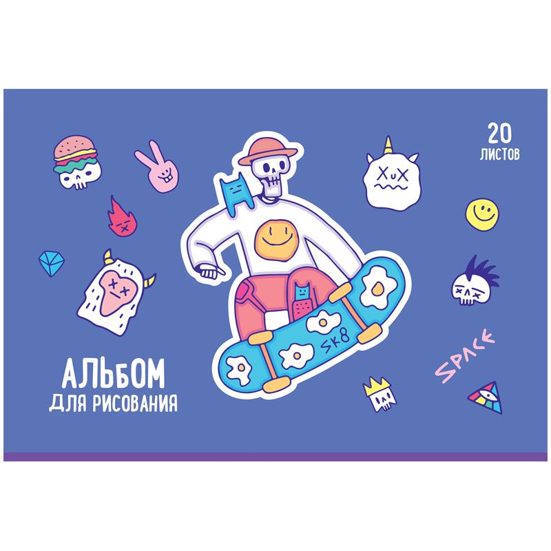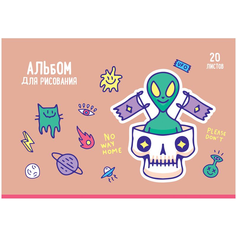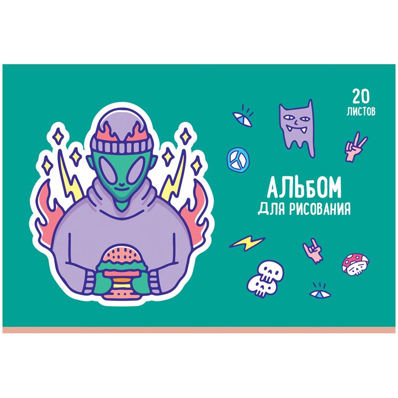 Альбом для рисования BG «Другие миры» – отличный помощник для художественного творчества. Альбом формата А4 размером 205*295 мм с обложкой из мелованного картона состоит из 20 листов офсетной бумаги 100% белизны на скрепке. Плотность бумаги составляет 100 г/м2, что соответствует техническому регламенту «О безопасности продукции, предназначенной для детей и подростков».