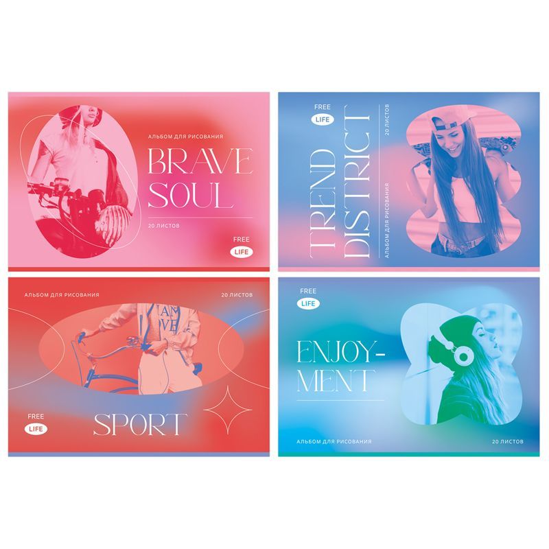 Альбом для рисования 20л., А4, на скрепке BG "Free live"