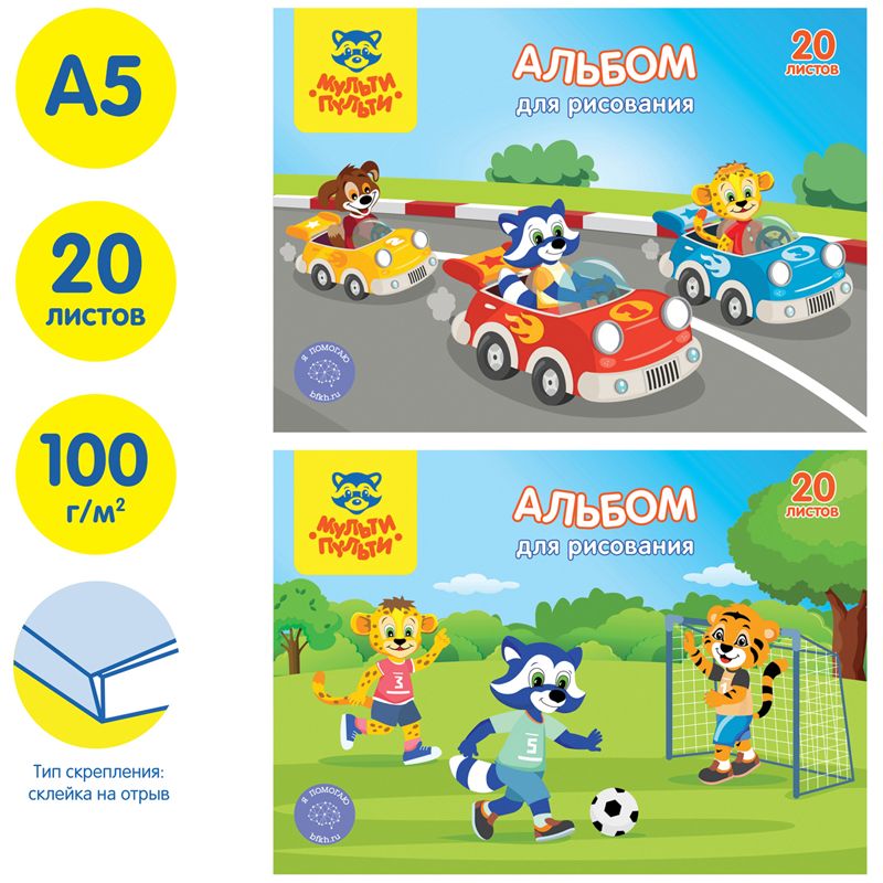 Альбом для рисования 20л., А5, на склейке Мульти-Пульти "Приключения Енота", с раскраской