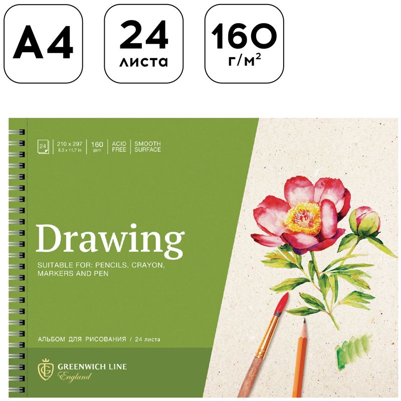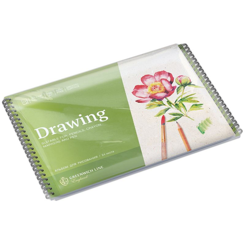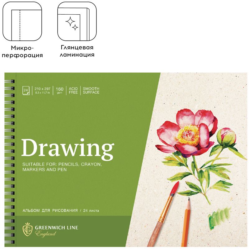 Альбом для рисования 24л., А4, на гребне Greenwich Line "Botanical. Peony", 160г/м2, глянцевая ламинация, перфорация на отрыв