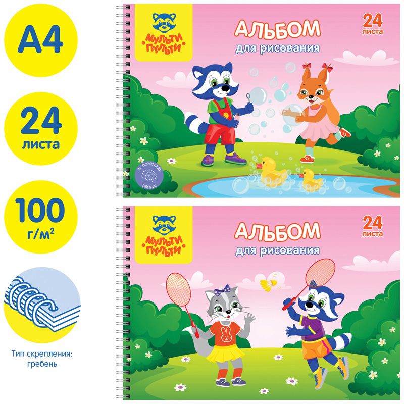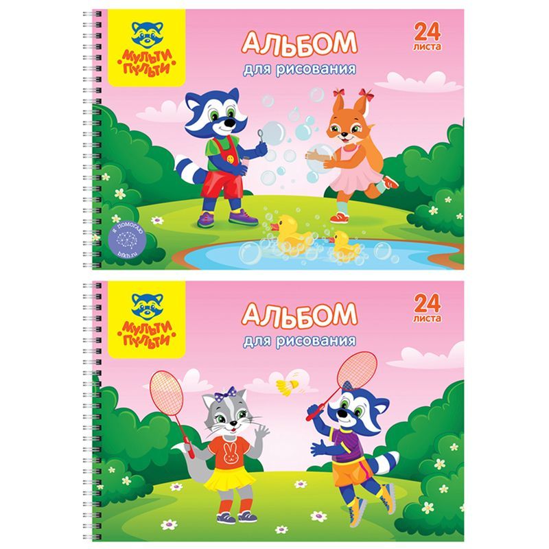 Альбом для рисования 24л., А4, на гребне Мульти-Пульти "Приключения Енота", с раскраской