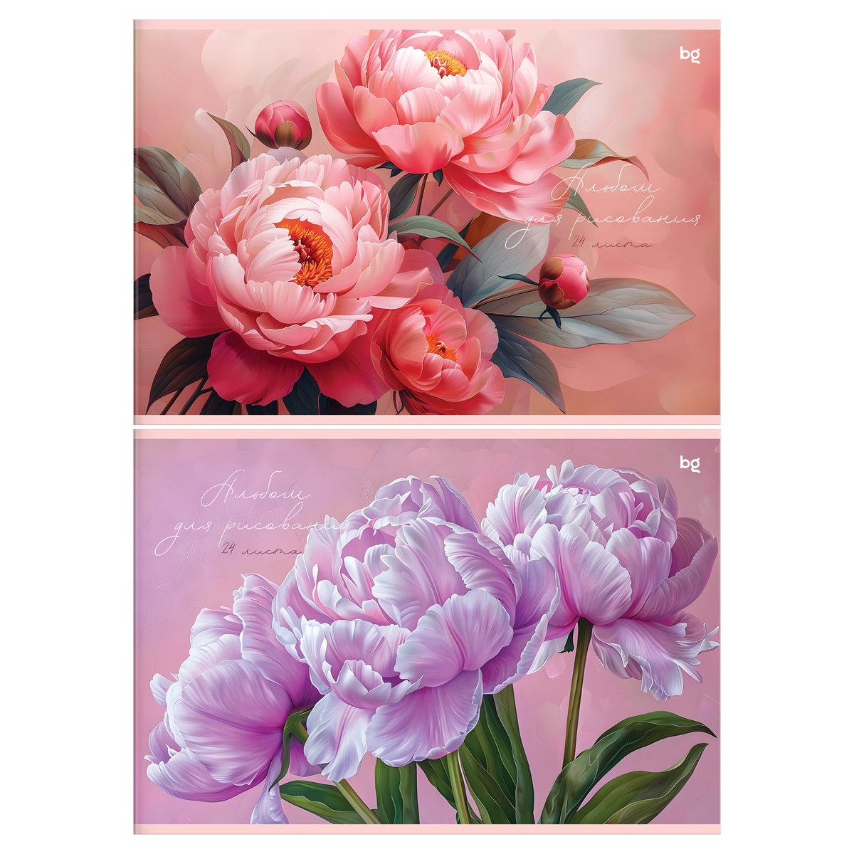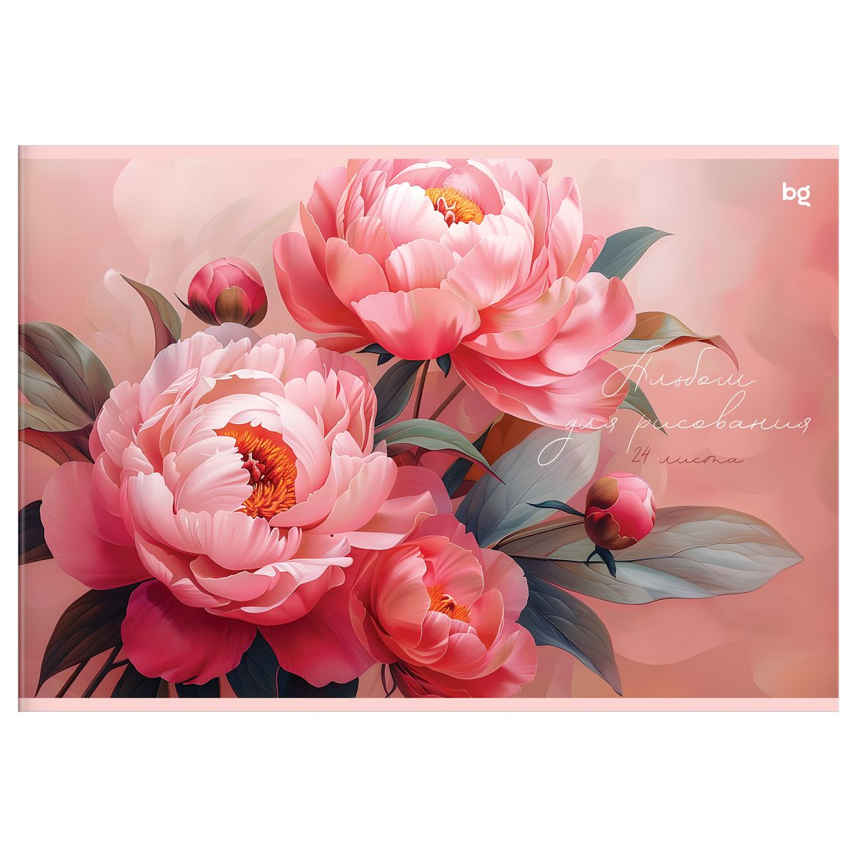 Альбом для рисования 24л., А4, на скрепке BG "Пионы"
