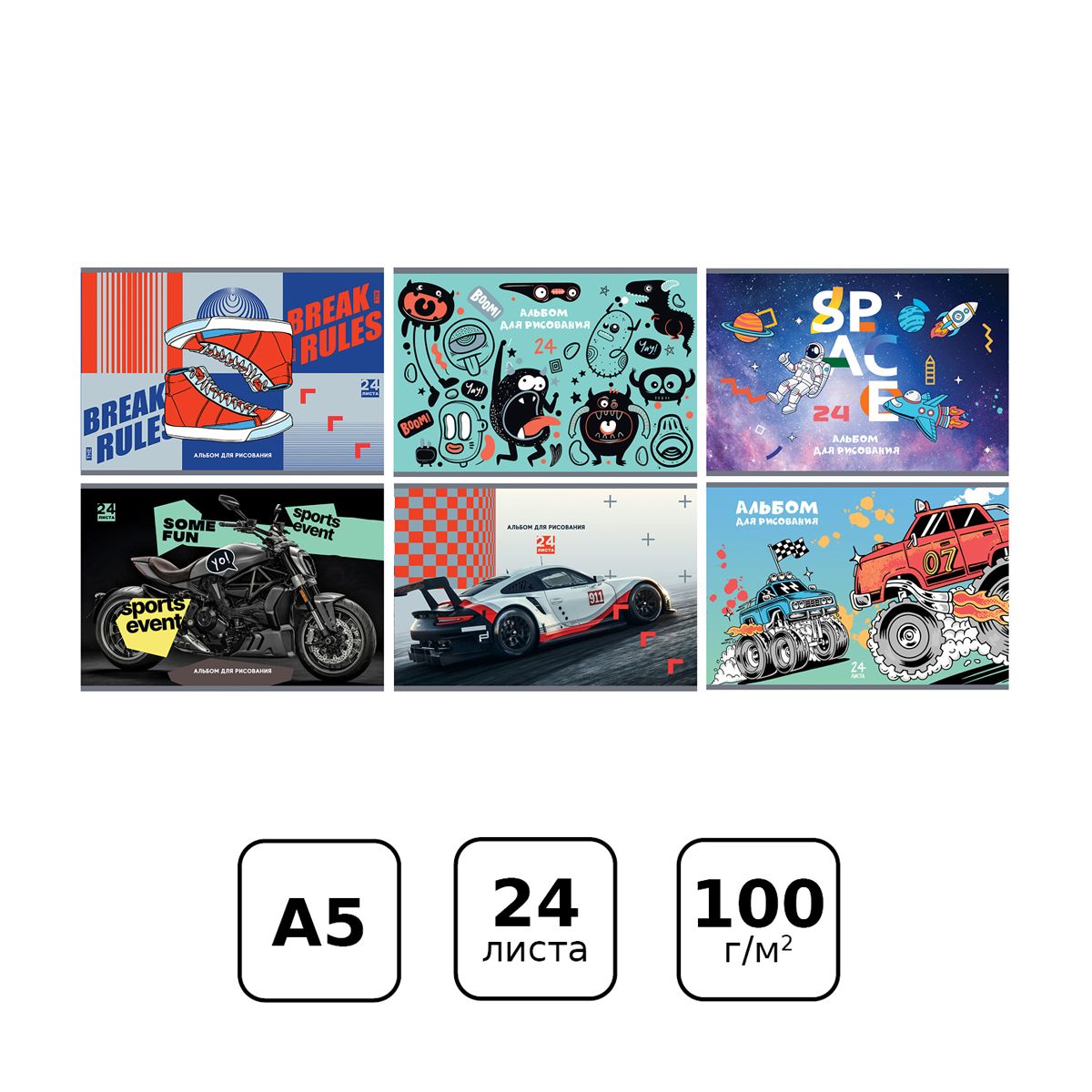 Альбом для рисования 24л., А5, на скрепке BG "Mix. Мальчики"