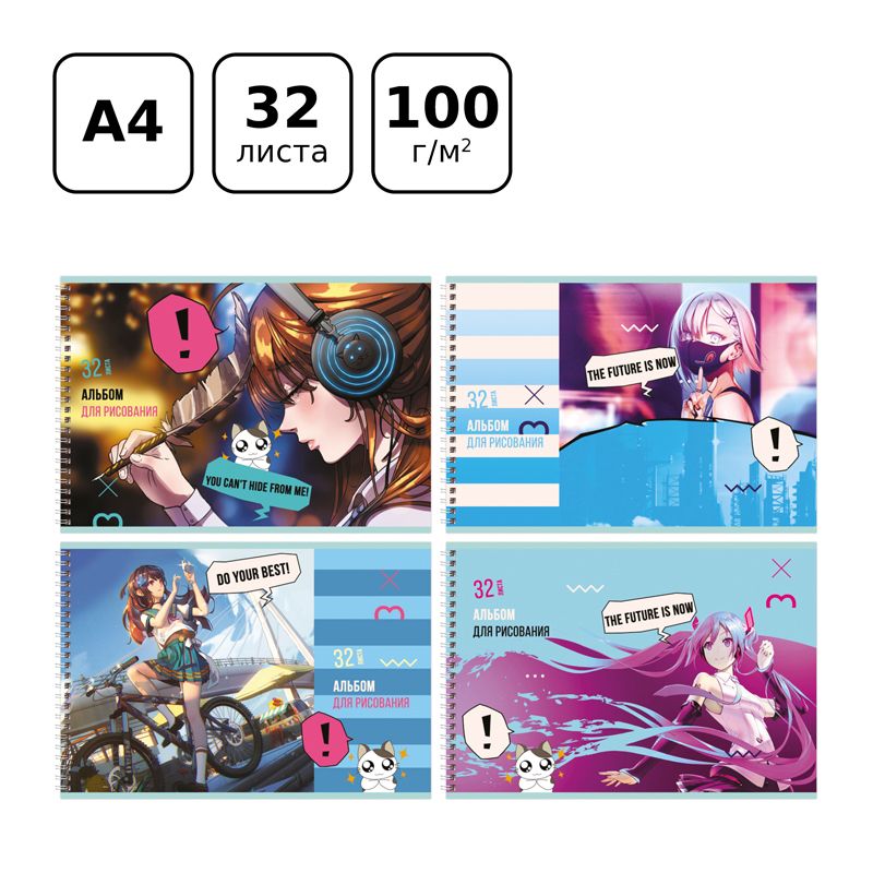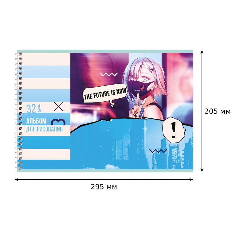 Альбом для рисования BG «Будущее сегодня» – лучший помощник для детского художественного творчества. Альбом на гребне формата А4 размером 205*295 мм с обложкой из мелованного картона состоит из 32 листов офсетной бумаги 100% белизны. Плотность бумаги составляет 100 г/м2, что соответствует техническому регламенту «О безопасности продукции, предназначенной для детей и подростков».