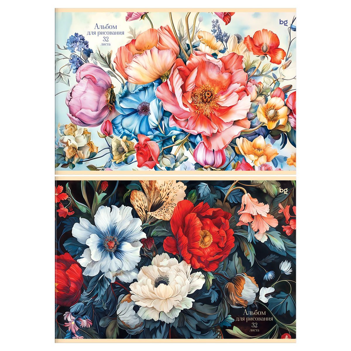 Альбом для рисования 32л., А4, на скрепке BG "Акварельные цветы"