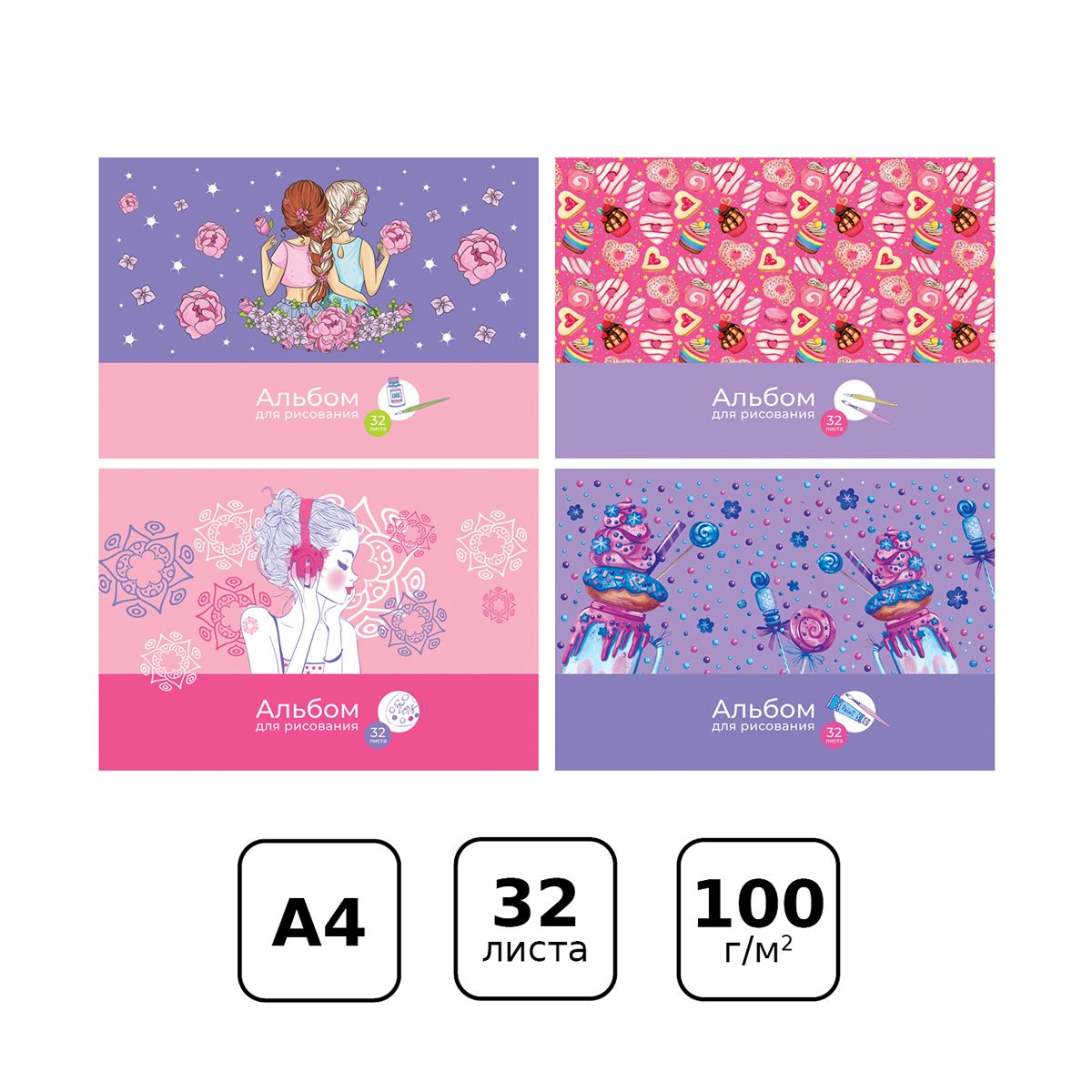 Альбом для рисования 32л., А4, на скрепке BG "Sweet life", эконом