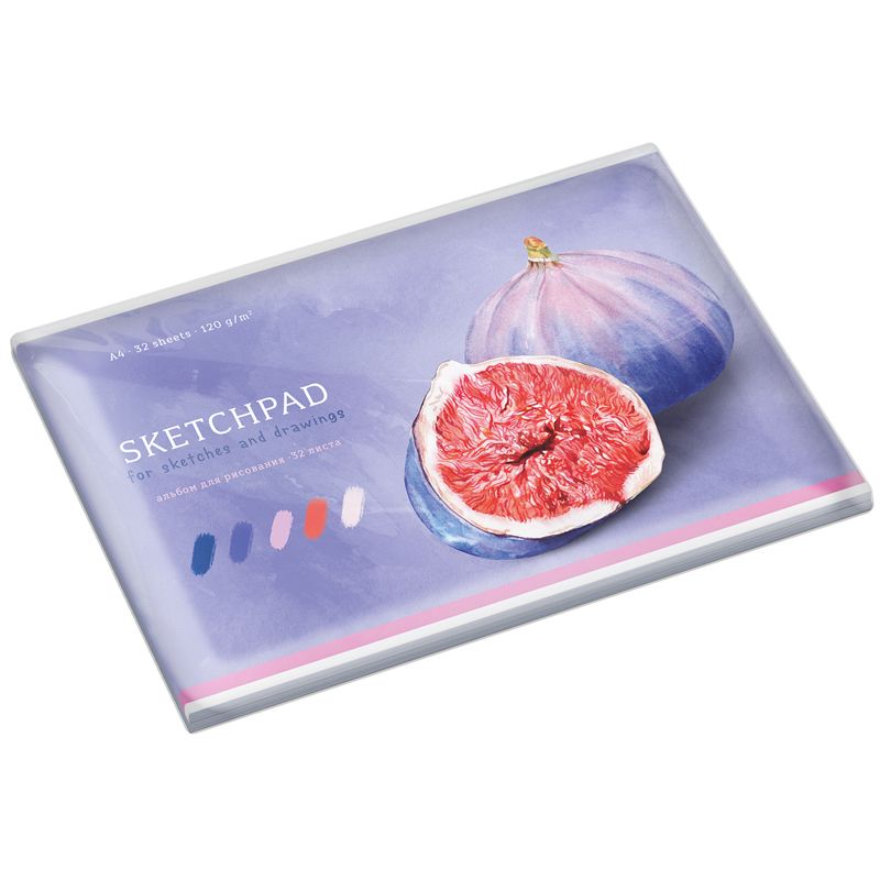 Альбом отлично подойдёт для рисования различными типами красок, фломастерами, цветными и чернографитными карандашами, гелевыми ручками. Универсальный дизайн обложки с рисунком инжира, выполненным в акварельной технике.