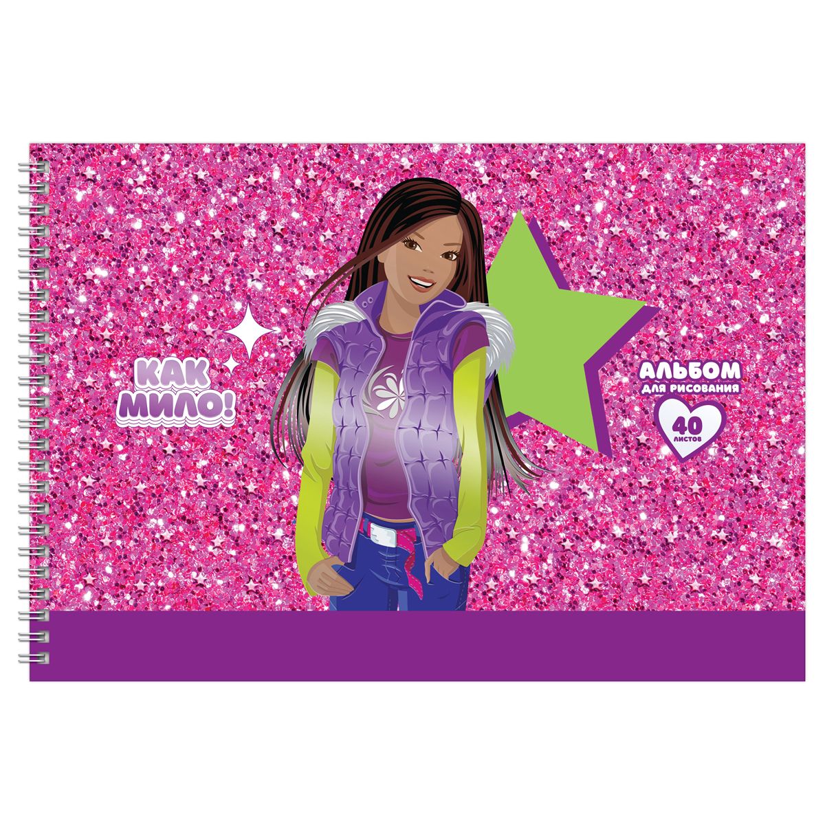 Альбом для рисования 40л., А4, на гребне BG "Barbie Style", выб. лак, блестки