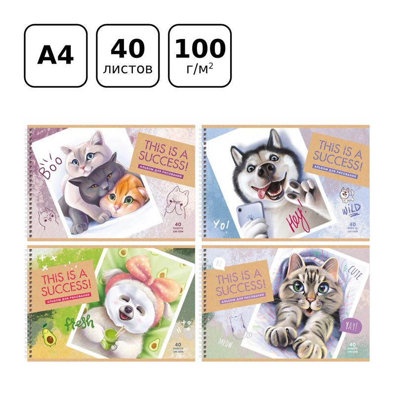 В упаковке ассорти ярких дизайнов. Альбом отлично подойдет для рисования различными типами красок, фломастерами, цветными и чернографитными карандашами, гелевыми ручками. Не имеет возрастных ограничений.