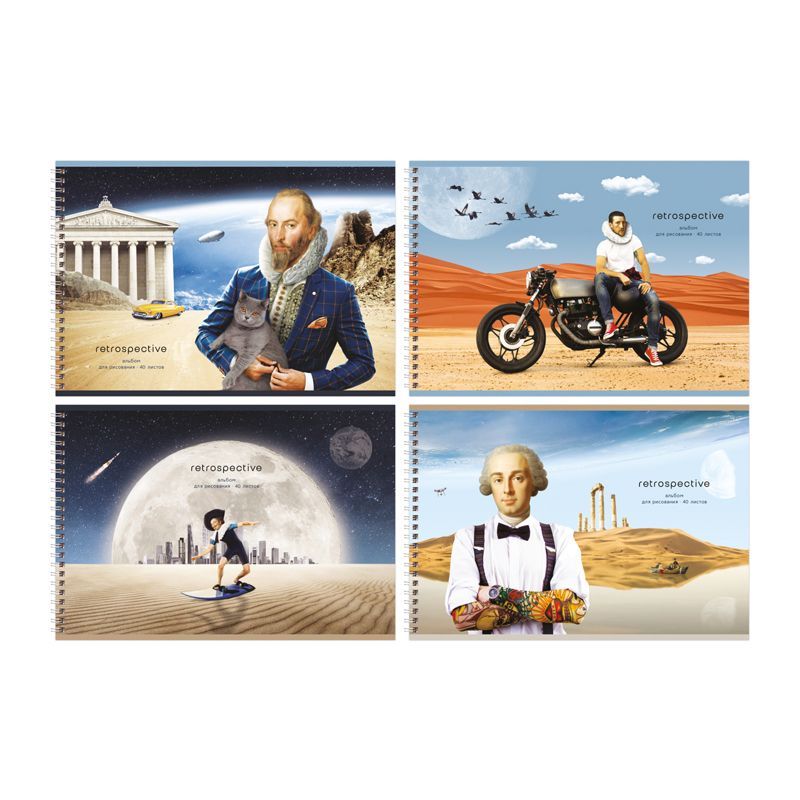 Альбом для рисования 40л., А4, на гребне BG "Retrospective"