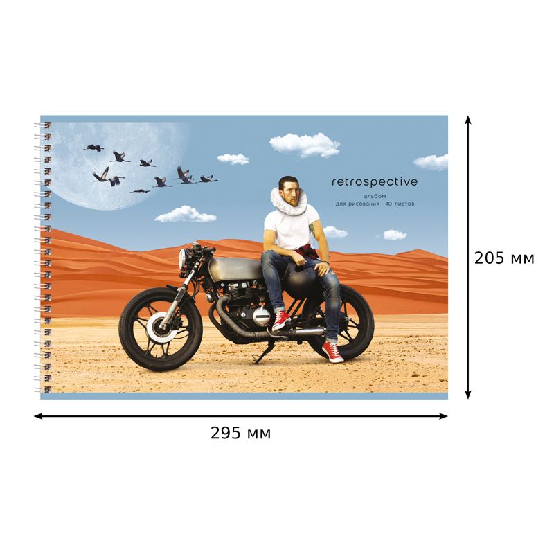 Альбом для рисования BG Retrospective – лучший помощник для детского художественного творчества. Альбом на гребне формата А4 размером 205*295 мм с обложкой из мелованного картона состоит из 40 листов офсетной бумаги 100% белизны. Плотность бумаги составляет 100 г/м2, что соответствует техническому регламенту «О безопасности продукции, предназначенной для детей и подростков».