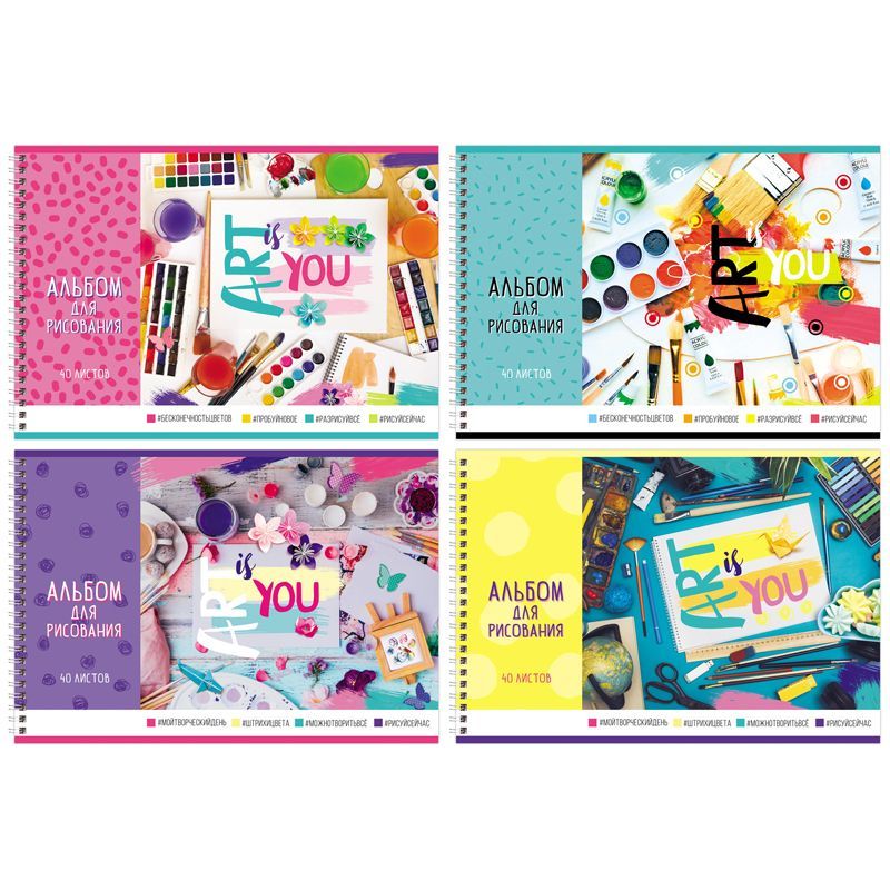 В упаковке ассорти универсальных и ярких дизайнов альбомов. Альбом отлично подойдёт для рисования различными типами красок, фломастерами, цветными и чернографитными карандашами, гелевыми ручками. Без возрастных ограничений.