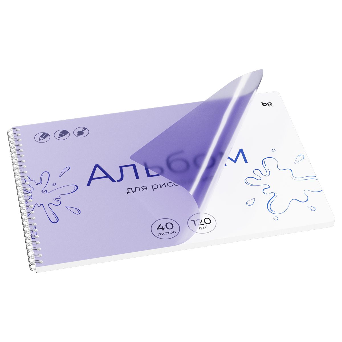 Альбом для рисования 40л., А4, на гребне BG "UniTone. Violet", пластиковая обложка, 120г/м2