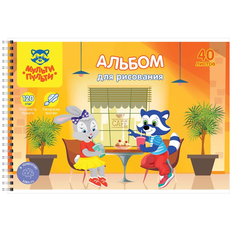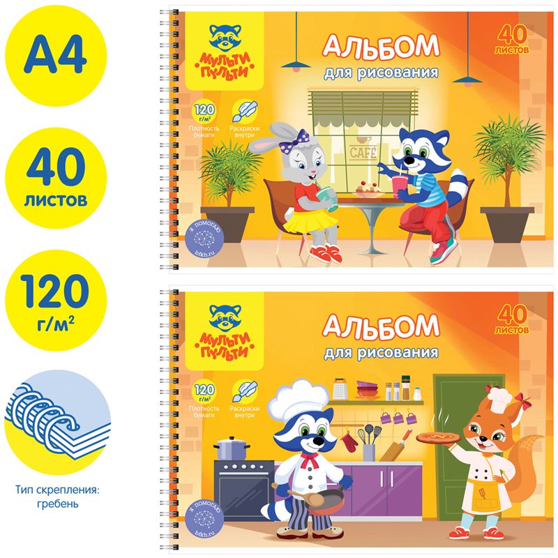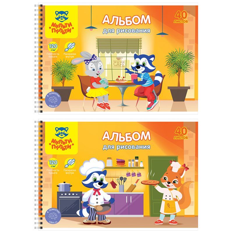 Альбом для рисования 40л., А4, на гребне Мульти-Пульти "Приключения Енота", 120г/м2, с раскраской