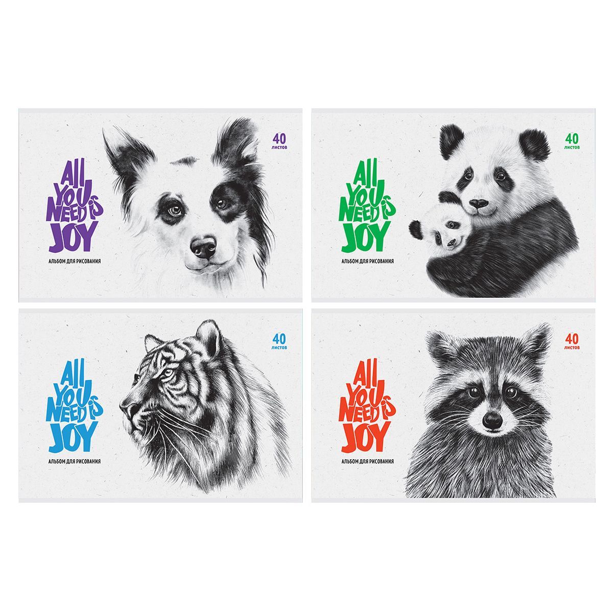 Альбом для рисования 40л., А4, на скрепке BG "All you need is joy", эконом
