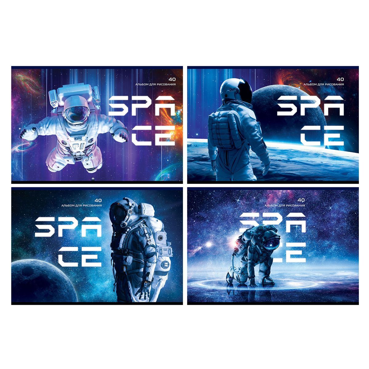 Альбом для рисования 40л., А4, на скрепке BG "Галактика", металлизация