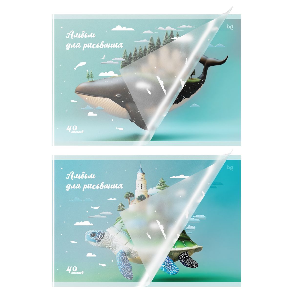 Альбом для рисования 40л., А4, на скрепке BG "Где спят океаны", пластиковая обложка