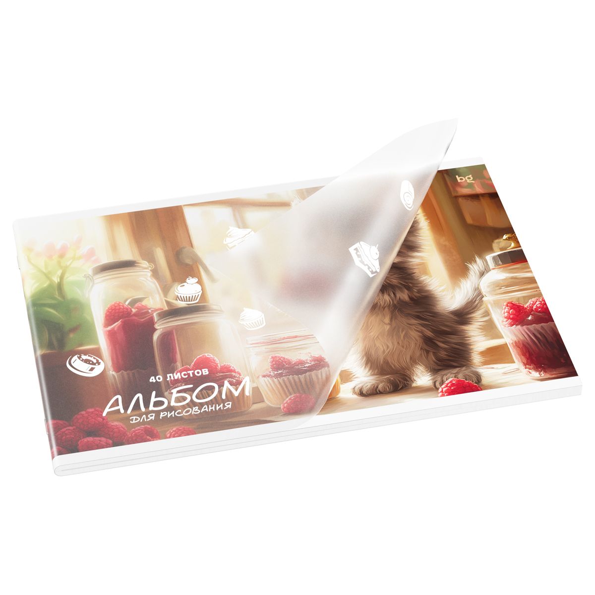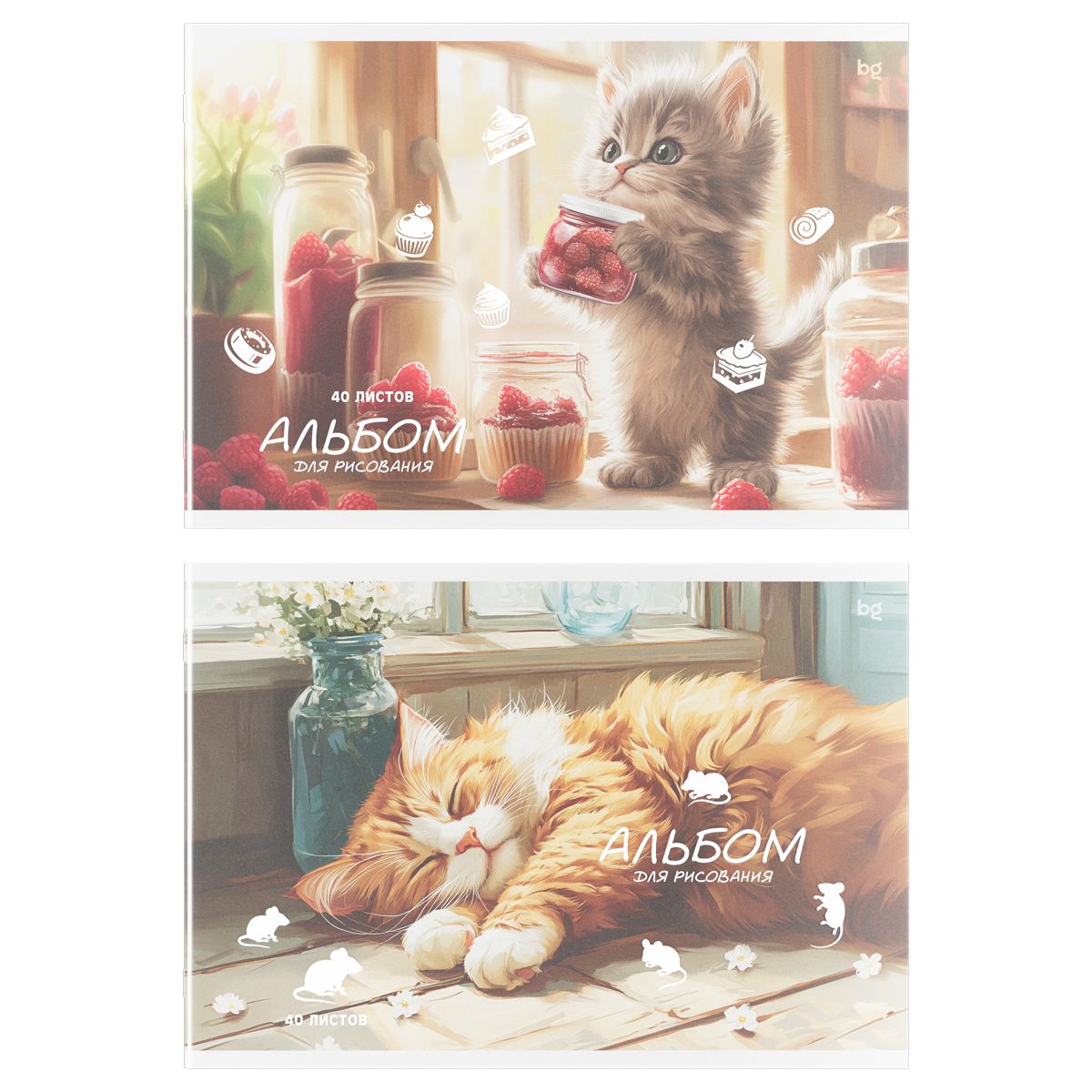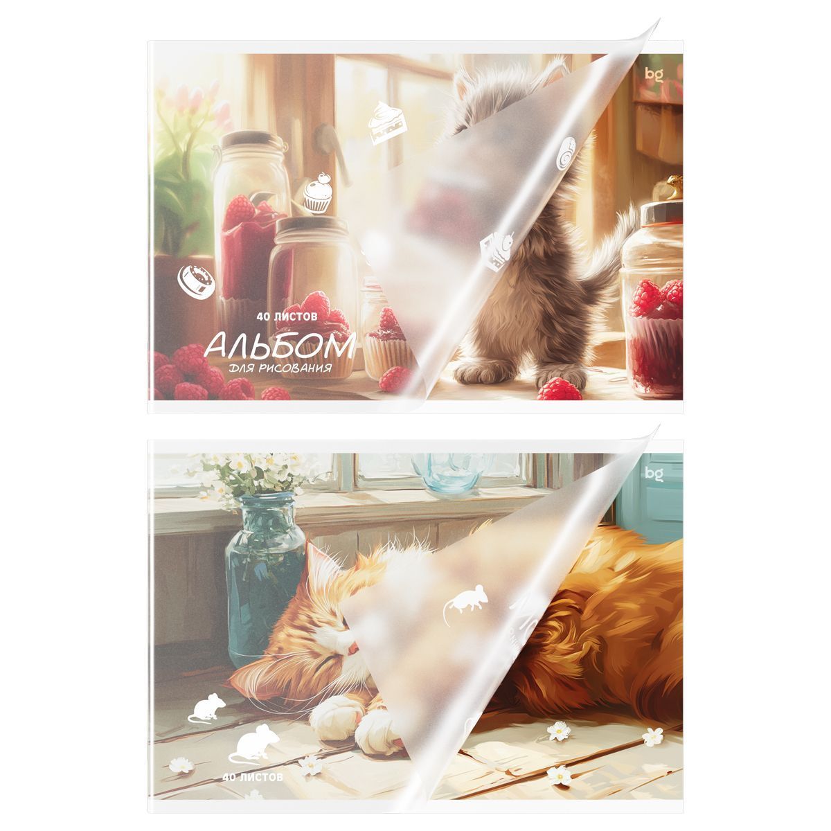 Альбом для рисования 40л., А4, на скрепке BG "Усы, лапы и хвост", пластиковая обложка