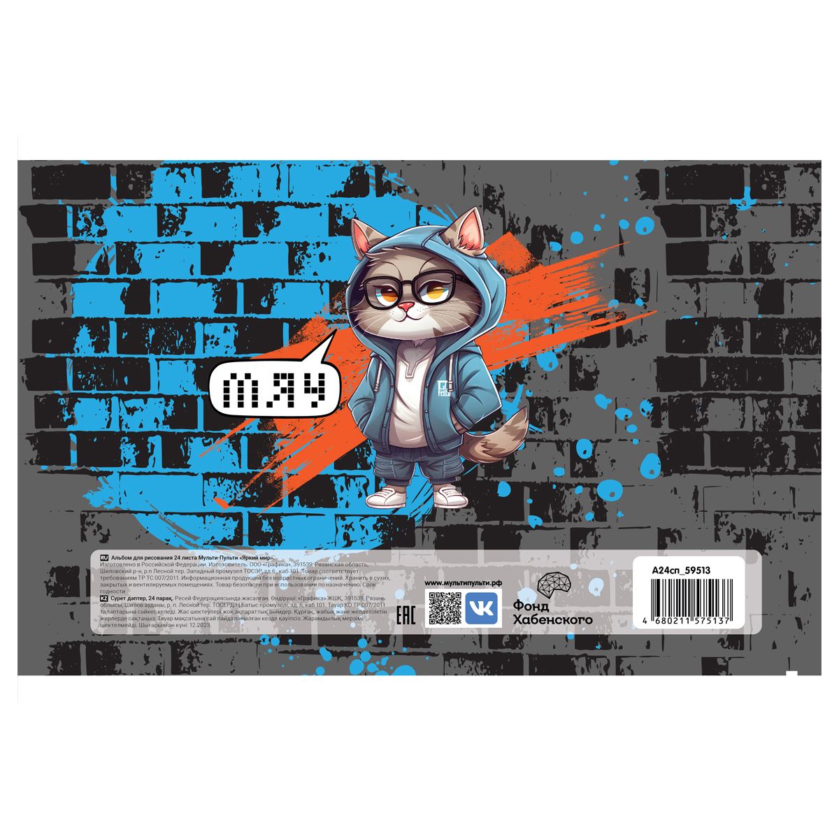 Обложка сделана из мелованного картона. Внутренний блок на скрепке состоит из 40 листов. Офсетная бумага плотностью 100 г/м2 подходит для рисования разными видами красок, фломастерами, цветными и чернографитными карандашами, гелевыми ручками.
