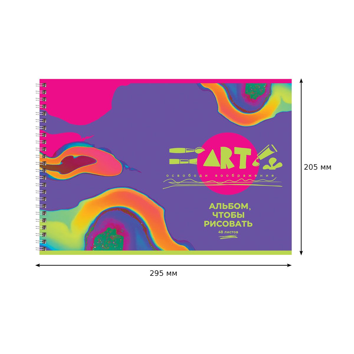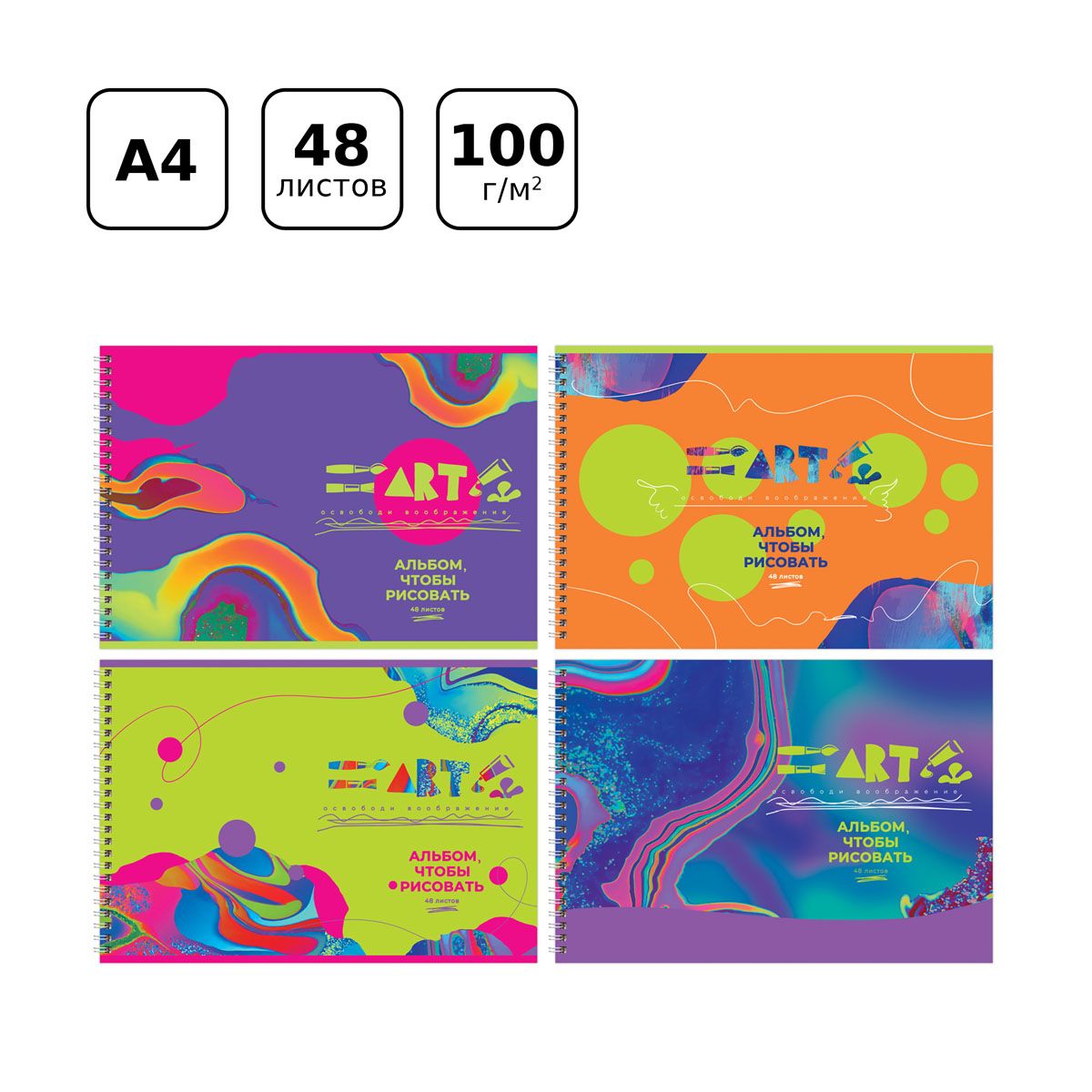 Альбом для рисования BG «Освободи воображение» – отличный помощник для художественного творчества. Альбом формата А4 размером 205*295 мм с обложкой из мелованного картона состоит из 48 листов офсетной бумаги 100 % белизны на гребне. Плотность бумаги составляет 100 г/м2, что соответствует техническому регламенту «О безопасности продукции, предназначенной для детей и подростков».