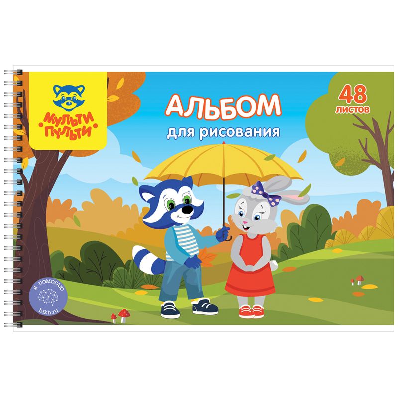 Альбом для рисования 48л., А4, на гребне Мульти-Пульти "Приключения Енота", с раскраской