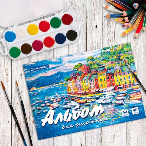 Альбом для рисования А4 40 л., склейка, обложка картон, подложка, BRAUBERG, 205х290 мм, "Краски лета", 106329