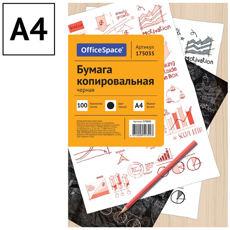 Бумага копировальная OfficeSpace, А4, 100л., черная