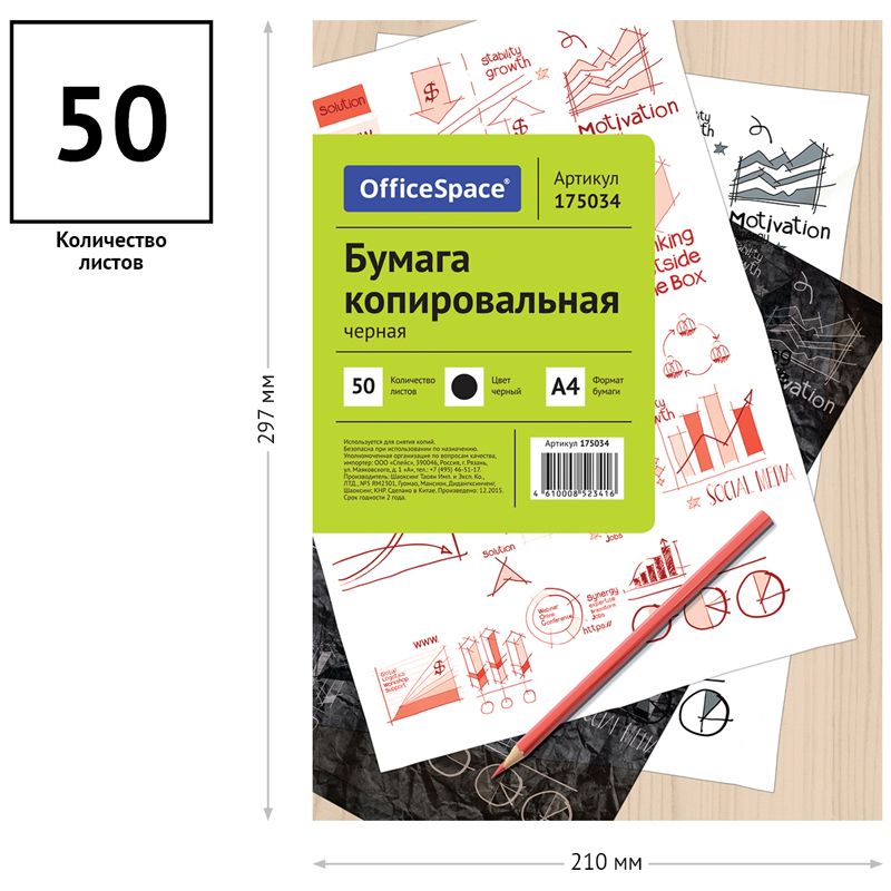 Бумага копировальная OfficeSpace, А4, 50л., черная