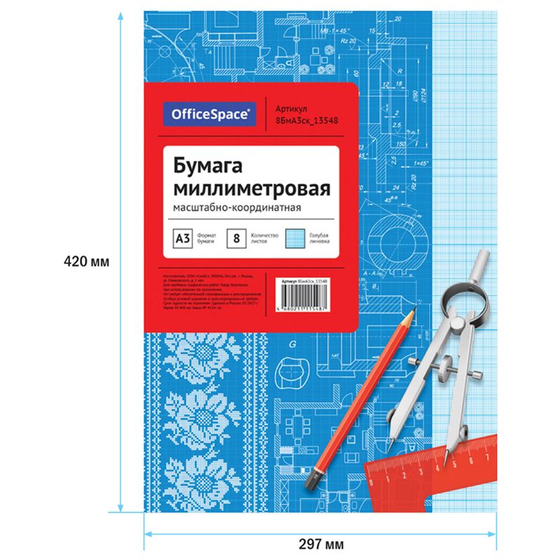 Бумага масштабно-координатная OfficeSpace, А3 8л., голубая, на скрепке