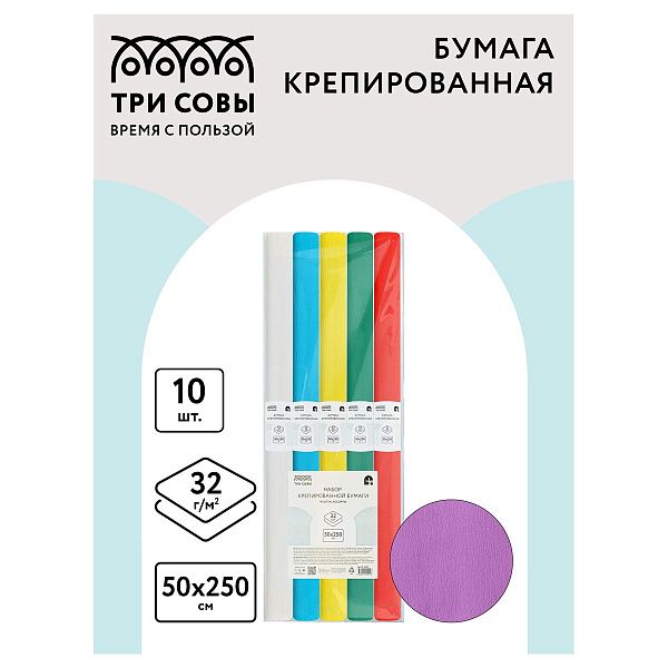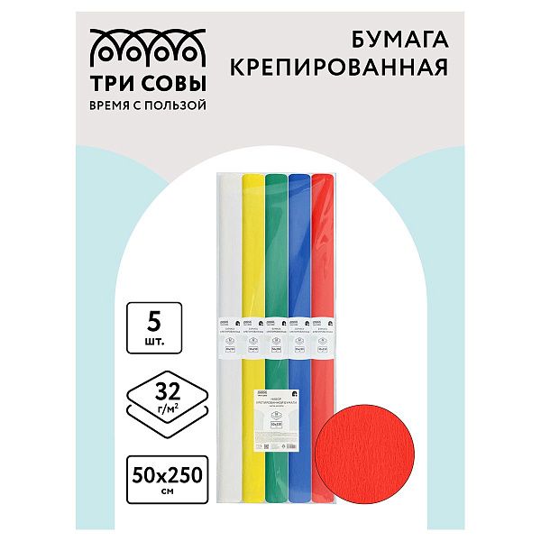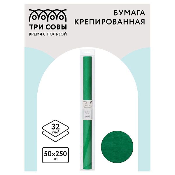 - Бумага крепированная Три Совы: рулоны, разные цвета, плотность 32–110 г/м².
