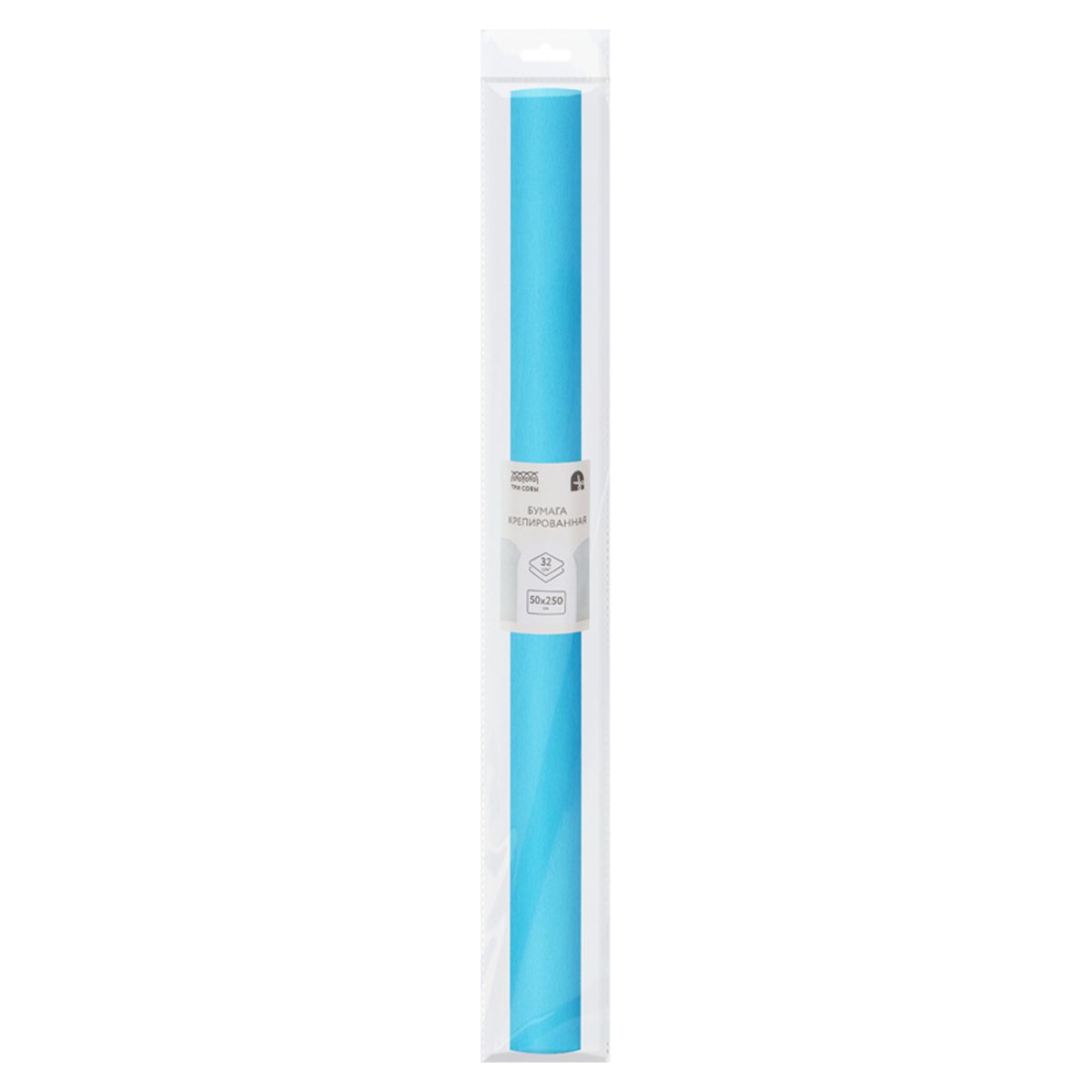 Бумага крепированная ТРИ СОВЫ, 50*250см, 32г/м2, бирюзовая, в рулоне, пакет с европодвесом