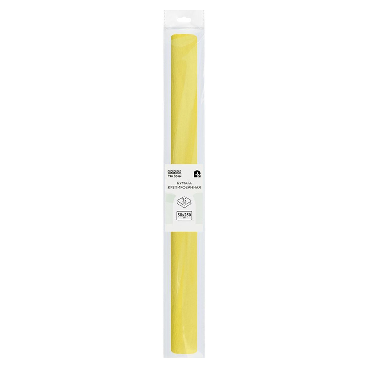 Бумага крепированная ТРИ СОВЫ, 50*250см, 32г/м2, лимонная, в рулоне, пакет с европодвесом