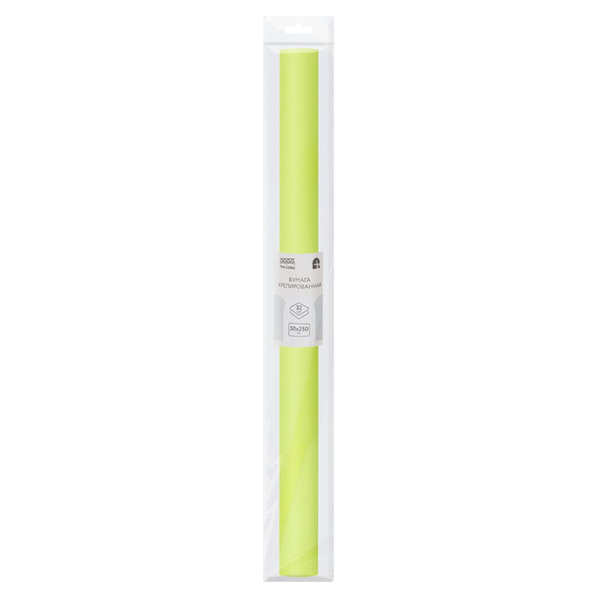 Бумага крепированная ТРИ СОВЫ, 50*250см, 32г/м2, светло-салатовая, в рулоне, пакет с европодвесом
