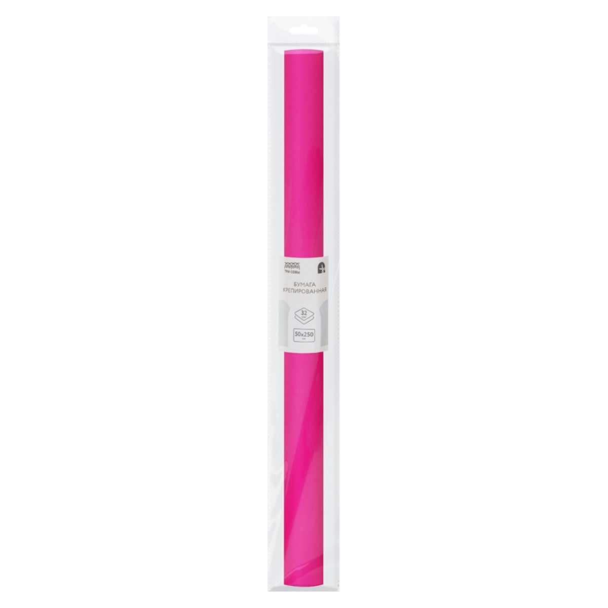 Бумага крепированная ТРИ СОВЫ, 50*250см, 32г/м2, темно-розовая, в рулоне, пакет с европодвесом