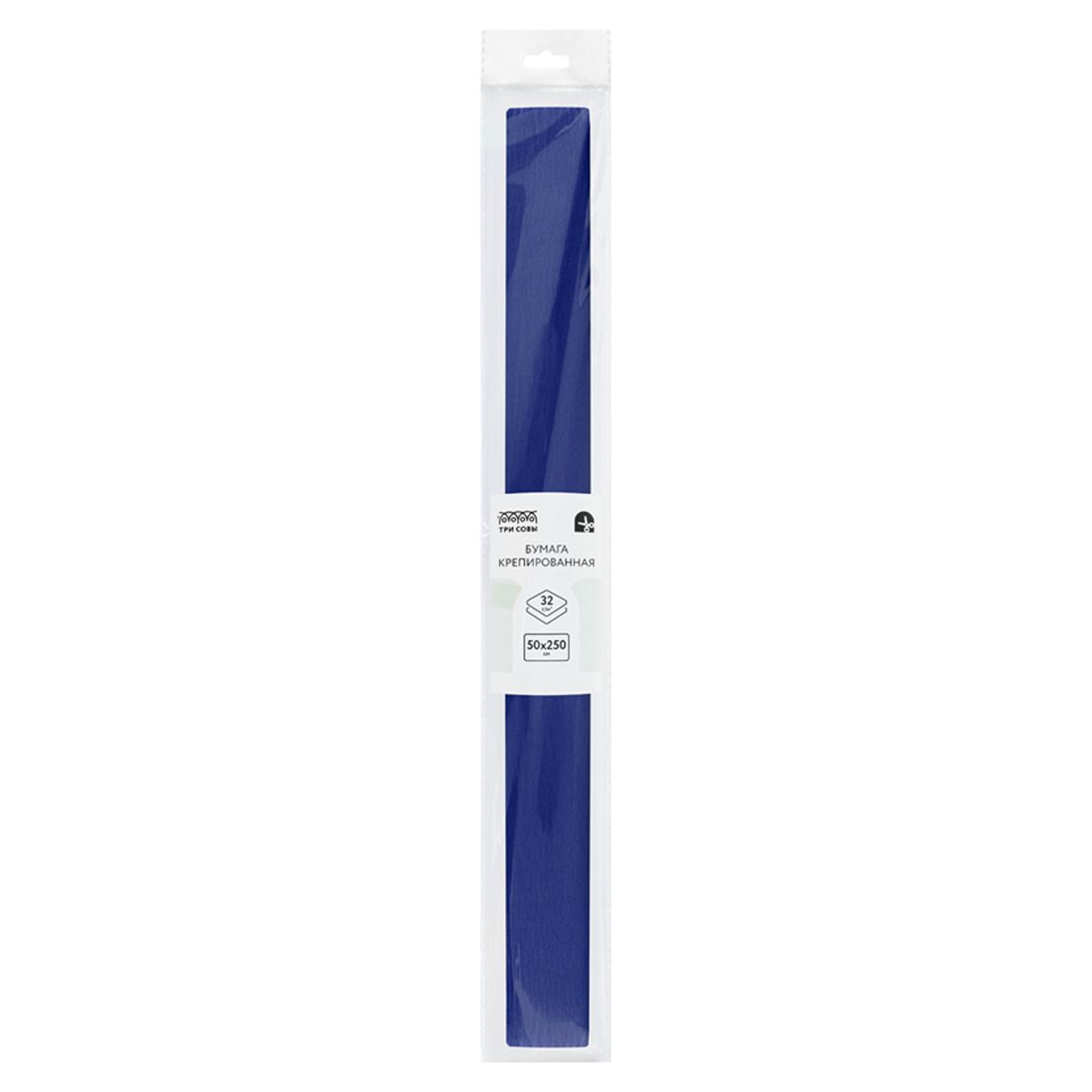 Бумага крепированная ТРИ СОВЫ, 50*250см, 32г/м2, темно-синяя, в рулоне, пакет с европодвесом