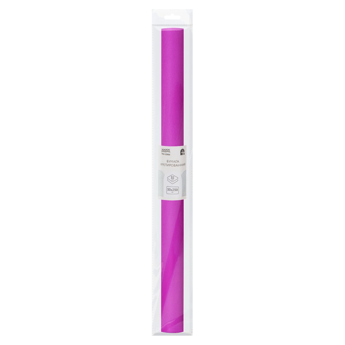 Бумага крепированная ТРИ СОВЫ, 50*250см, 32г/м2, ярко-сиреневая, в рулоне, пакет с европодвесом